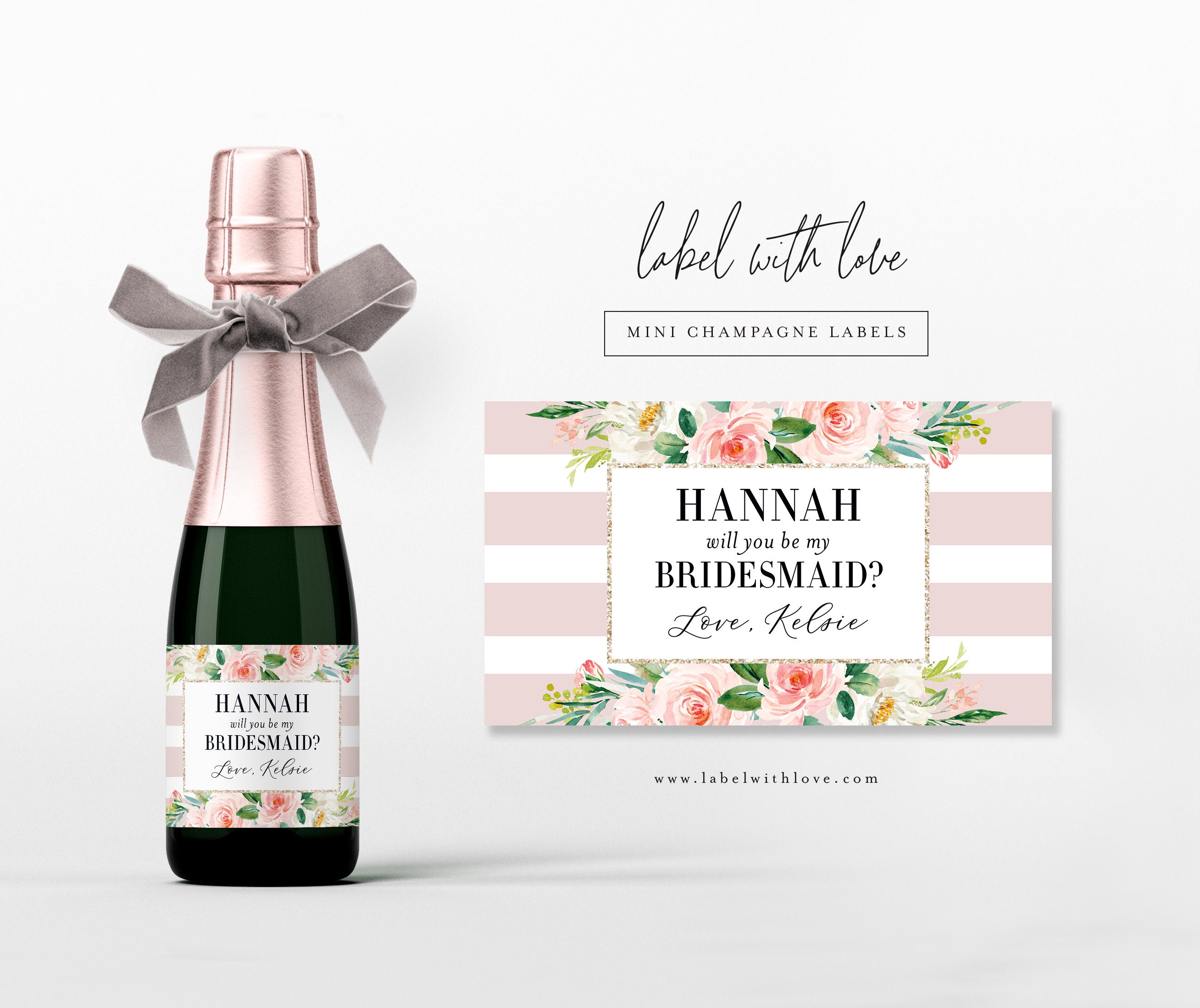 Mini Bridesmaid Custom Champagne Label, Bridesmaid Wine Label, Bridesmaid Proposal, Bridal Par ...