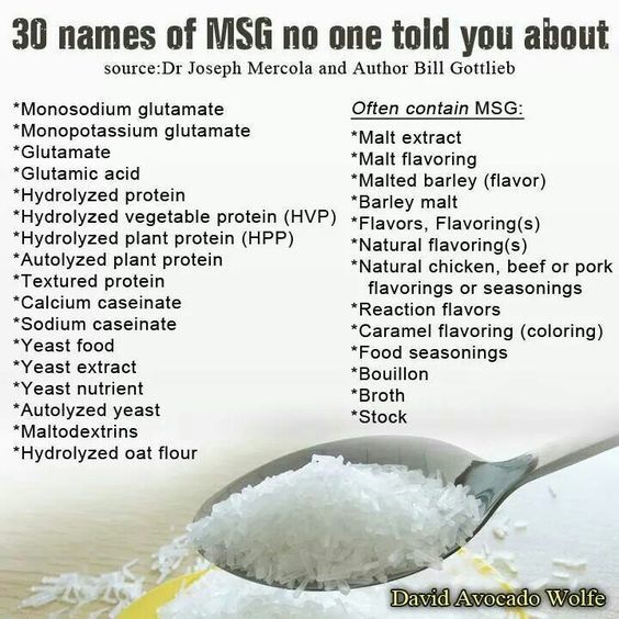 Substitutes For MSG - The 8 Best Options - Tastylicious 8 best monosodium glutamate alternatives. 1. Beef stock. To get the best possible flavor make your own beef stock, or broth, by slow cooking beef bones and aromatics in a stockpot. Homemade stock does an excellent job of increasing the umami in food. In fact, the meaty flavor closely mimics that of MSG. That's because they both contain high ... Sneaky MSG Alternatives that Make you EAT MORE (MSG in Disguise) | Many ... 0 views, 2 likes, 0 loves, 0 comments, 0 shares, Facebook Watch Videos from Thomas DeLauer: Many people try to avoid foods containing MSG. Unfortunately, there are A LOT of other names for MSG that... Other Names for MSG | Naturally Savvy Other names for MSG include: NATURALLY SAVVY NEWSLETTER Get the latest information, tips & recipes for healthy living delivered directly to your inbox. Often, the term 'natural flavor' refers to ingredients containing MSG. Not everyone will react to MSG, so listen to your body. List of MSG-Free Foods | livestrong As you're probably aware, food ingredient labels use varied names for substances that contain MSG. Examples include glutamic acid, monosodium glutamate, calcium caseinate, autolyzed yeast, textured protein, natural flavor and others. ... If a spice or other food ingredient contains MSG, this compound must still appear on the label. As a caution ...