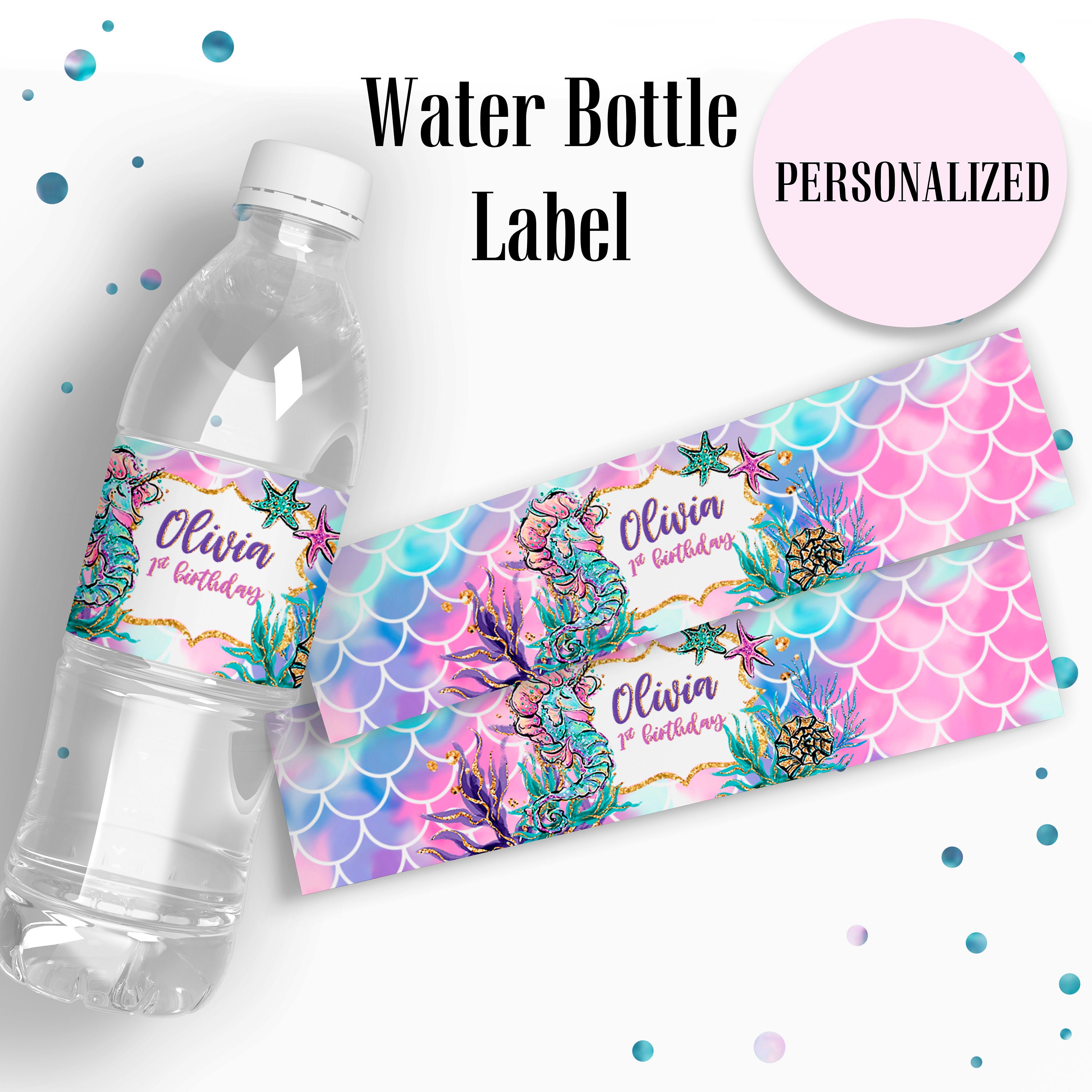 Free Mermaid Birthday Party Printables Gold Mermaid Birthday Party Printables. Gold Mermaid Cupcake Toppers. Mermaid Food Tents (8 labeled and 4 blank) Let's Be Mermaids Banner with Gold Letters. Gold Mermaid Water Bottle Labels. Don't forget to follow us on Facebook, Pinterest, Twitter, and Instagra m for all the latest buzz. "Life's a party, frame it with printables!". Wholesale mermaid water bottle labels Supplier from China - BZSticker mermaid water bottle labels. Water Bottle Label Plastic Water Bottle Label Custom Printed Pvc Shrink Sleeve Water Plastic Bottle Label. $3.60-$4.50/ Kilogram 1 Kilogram (Min. Order) If you want your customized sample, you need to pay the cost for sample and shipment. So the more quantity you order , the better unit price you will get . 6 Sets of Free, Printable Water Bottle Labels - The Spruce Crafts Wrap them around soda bottles or wine bottles to make them extra special too. It's straightforward to attach the free water bottle labels to the water bottles even if you don't have label paper. Simply print them on regular computer paper and cut them out and use double-sided tape to wrap them around the flat part of the bottle. Mermaid Sparkles Water Bottle Label - Bottle Your Brand Make your own Mermaid Sparkles Water Bottle Label. Design and order online. Orders printed and shipped within 48 hours by Bottle Your Brand! Custom & standard shaped name labels are on sale! Start labeling kids things for back to school and save with code: SUMMER22.